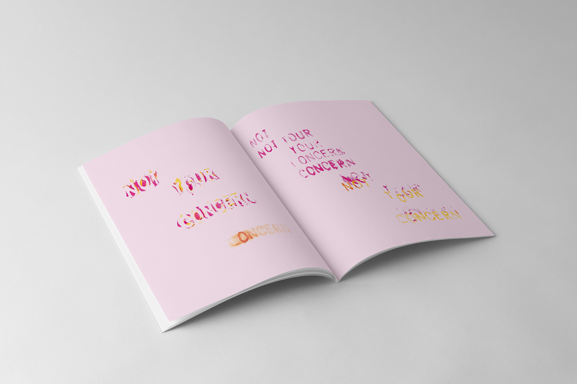 DES308 TYPOGRAPHY III: EXPRESSION is an advanced design studio course that explores typographic form and expression. Students engage in textural investigations of typographic form and expression with an emphasis on composition (contrast, rhythm, tension), non-linearity, visual argumentation, dimensions, and the interplay between digital and analog operations.